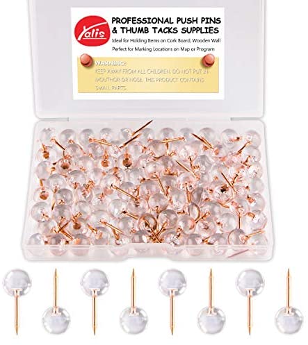 • Yalis Push Pins 1/3 Inch Rose Gold Map Tacks 100-Count Large Size Pins Rose Gold Steel Point and Transparent Plastic Round Head (Rose Gold)