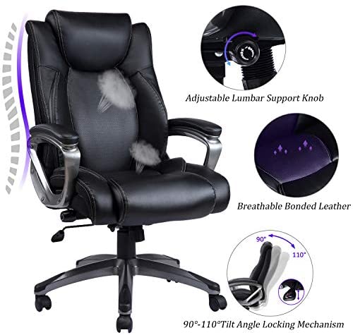 • REFICCER Bonded Leather Office Chair – Adjustable Built-in Lumbar Support and Tilt Angle High Back Executive Computer Desk Chair for Office Workers & Students