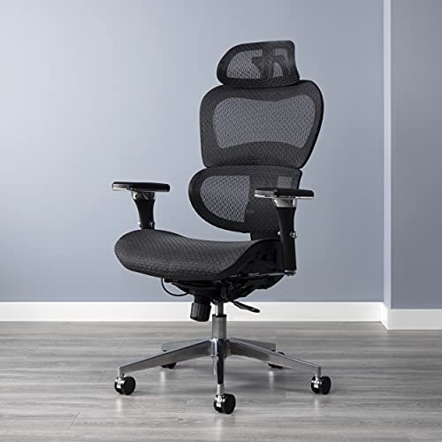 Duramont Ergonomic Adjustable Office Chair with Lumbar Support and Rollerblade Wheels – High Back with Breathable Mesh – Thick Seat Cushion – Adjustable Head & Arm Rests, Seat Height – Reclines
