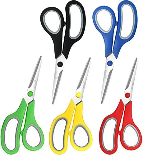 • Scissors, VERONES 8 Inch Soft Comfort-Grip Handles & Stainless Steel Sharp Blades Perfect for Cutting Paper, Fabric Photos, More, 5-Pack