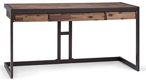 • Simpli Home Erina Solid Acacia Wood Modern Industrial 60 inch Wide Writing Office Desk in Rustic Natural Aged Brown