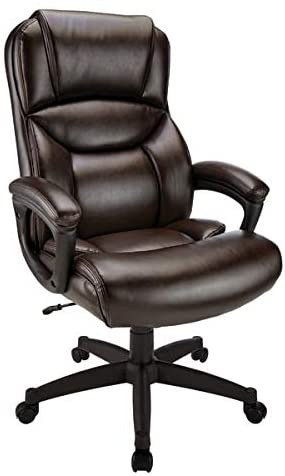 • AmazonBasics Bonded Leather Big & Tall Executive Office Computer Desk Chair, 350-Pound Capacity – Black, BIFMA Certified