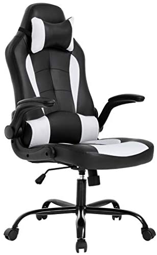• BestOffice PC Gaming Chair Ergonomic Office Chair Desk Chair with Lumbar Support Flip Up Arms Headrest PU Leather Executive High Back Computer Chair for Adults Women Men, Black and White