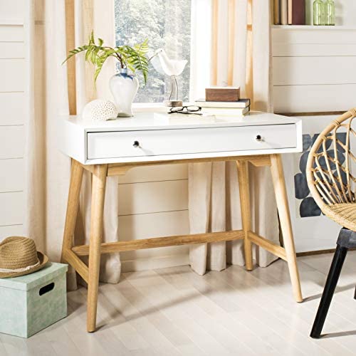 • Safavieh Home Office Isadora Mid-Century Modern White and Natural 1-drawer Desk