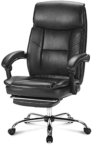 • Executive Office Chair Reclining Leather Computer Chair High Back Desk Chair Ergonomic for Lumbar Support with Angle Recline Locking System and Footrest, Black