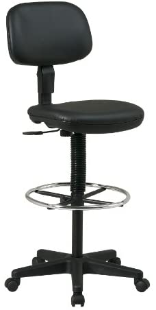 • Office Star Sculptured Vinyl Seat and Back Pneumatic Drafting Chair with Adjustable Chrome Foot ring, Black