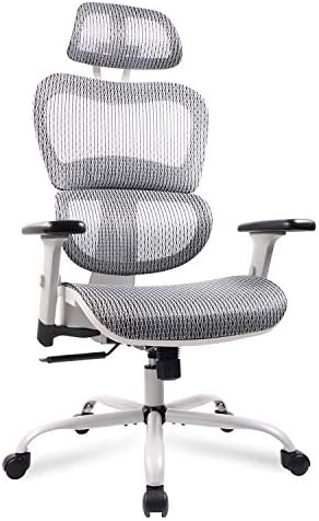 Ergonomic Office Chair, KERDOM Home Desk Chair, Comfy Breathable Mesh Task Chair, High Back Computer Chair with Headrest and 3D Armrests, Adjustable Height Home Gaming Chair (White-S)