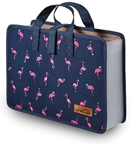 • JIEQI Expanding File Folder Document Organizer, 13 Pockets File Folders/Expandable Filing Folders with Handle A4 Size Accordion for Office/Business/School/Family Bill Paperwork (Blue-Flamingo)