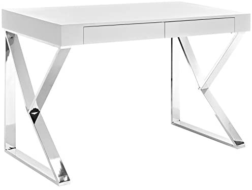 • Modway Adjacent Contemporary Modern Office Desk With Metallic Legs in White