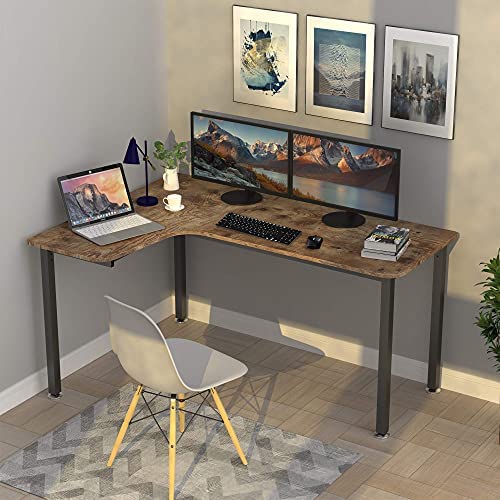 • DECOHOLIC Modern L-Shaped Home Office Desk 66 inch Sturdy Computer PC Laptop Table Corner Desk Workstation Larger Gaming Desk Easy to Assemble 66″ x 47.2″ x 29.5″ Sandalwood Board Black Leg