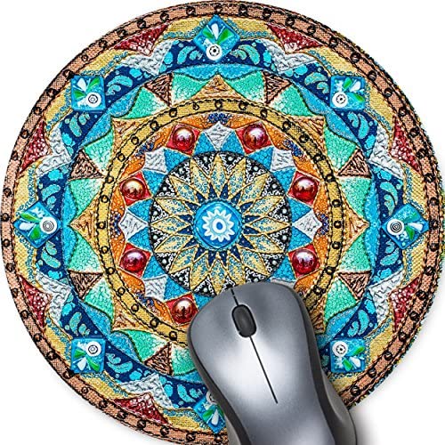 • Beautiful Oil Painting Watercolor Style Mandala Flower Background, Non-Slip Rubber Round Mouse Pad Perfect for Working and Gaming
