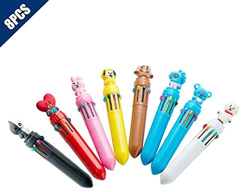 • Comidox 8Pcs BTS Bangtan Boys 10 in 1 Color Retractable Ballpoint Pen Creative Cartoon Shape Multicolor Pens Medium Point (0.7mm) For School Office Student Supply