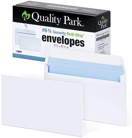 • Quality Park #6 3/4 Security-Tinted Envelopes with Peel & Seal, 100-Pack, White – QUA10417