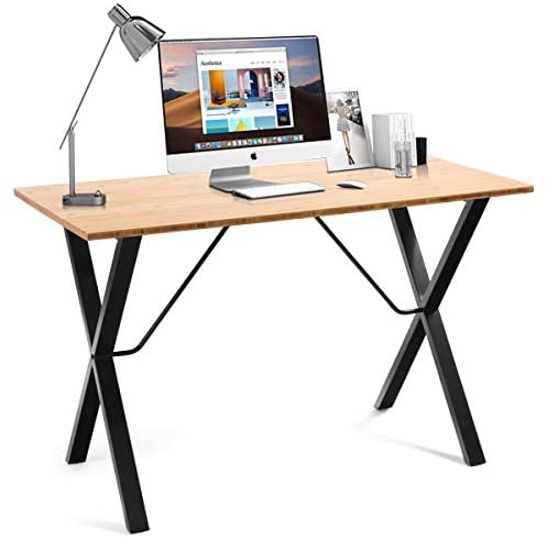• Tangkula 47.5 Inches Computer Desk, Modern Versatile Writing Desk with Bamboo Wood Top & X-Shape Metal Frame, Computer Workstation Study Writing Table Home Office Desk (Natural)