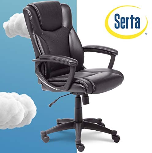 • Serta Executive High Back Office Chair with Lumbar Support Ergonomic Upholstered Swivel Gaming Friendly Design, Bonded Leather Black
