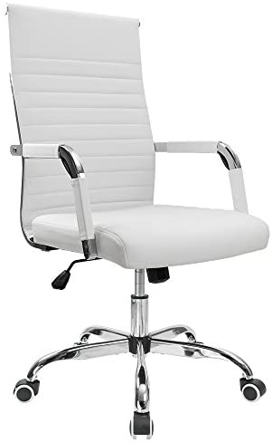 • Furmax Ribbed Office Desk Chair Mid-Back PU Leather Executive Conference Task Chair Adjustable Swivel Chair with Arms (White)