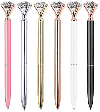 • ZZTX 6 PCS Big Crystal Diamond Ballpoint Pen Bling Metal Ballpoint Pen Office Supplies Gift Pens For Christmas Wedding Birthday, Includes 6 Pen Refills