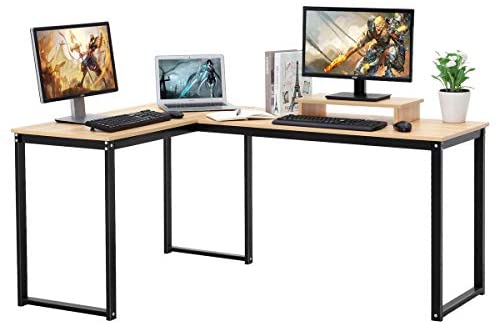 • Computer Desk, ZCH L-Shaped Large Corner PC Laptop Study Table Workstation Gaming Writing Desk for Home Office – Free Monitor Stand – Wood & Metal – Beech Wood Grain