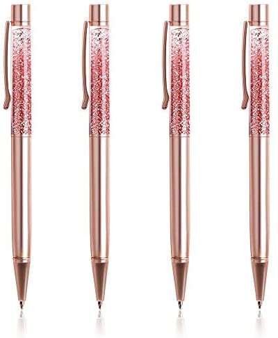 • Ballpoint Pens, BYSOU 4 Pcs Rose Gold Metal Pen Refills Bling Dynamic Liquid Sand Pen Black Ink for Office Supplies