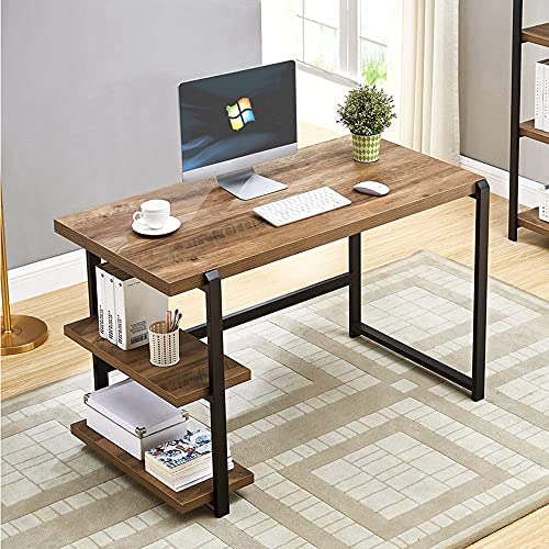 • FOLUBAN Home Office Desk, Industrial Computer Desk with 2 Storage Shelves on Left or Right, Modern Writing Table, Simple Wooden Study Table, Oak 47 inch.