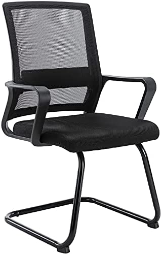 • Reception Chair, Heavy Duty Mesh Back Office Meeting Room Guest Chair with Sled Base, Office Chair no Wheels, Black