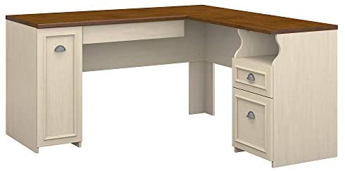 • Bush Furniture Fairview L Shaped Desk in Antique White