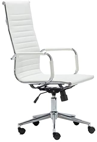 • BTEXPERT Large Adjustable Executive Conference Room Work Task White Office Chair High Back PU Leather Swivel