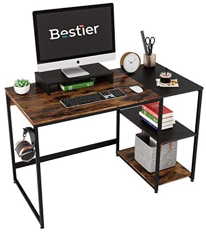 • Bestier Computer Desk with Storage Shelf 47 Inch Writing Table with Monitor Stand for Home Office Small Space, Rustic Brown and Black