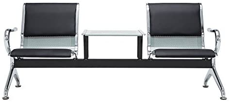 • walsport Leather Waiting Room Furniture Black Chairs Reception 2 Seat with Table for Airport Seating, Office, Bank, Hospital Bench, PU