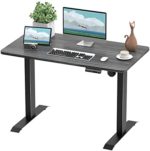 • JUMMICO Electric Standing Desk Height Adjustable Desk Office Computer Desk Memory Preset Stand Up Home Workstation T-Shaped Metal Bracket with Wood Tabletop (Grey, 44 Inch)