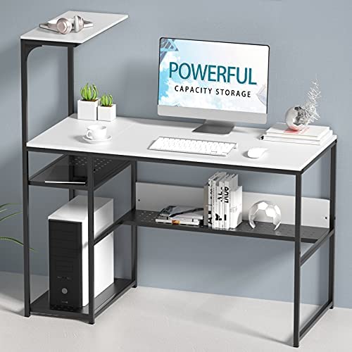 • SINPAID White Student Desk with Storage and Shelves, 40 Inches Writing Study Desks for Small Spaces Computer Desk, Modern Home Office Desk with Bookshelves and CPU Stand