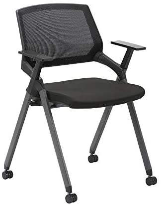 • CLATINA Mesh Guest Reception Stack Chairs with Caster Wheels and Arms for Office School Church Conference Waiting Room Black