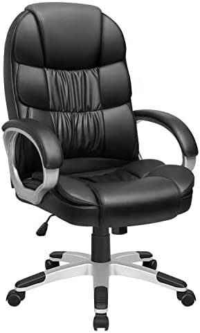 • Furmax Leather High Back Ergonomic Executive Office Swivel Computer Desk Chair Lumbar Support Soft Cushioned Padded Arms, Ink Black