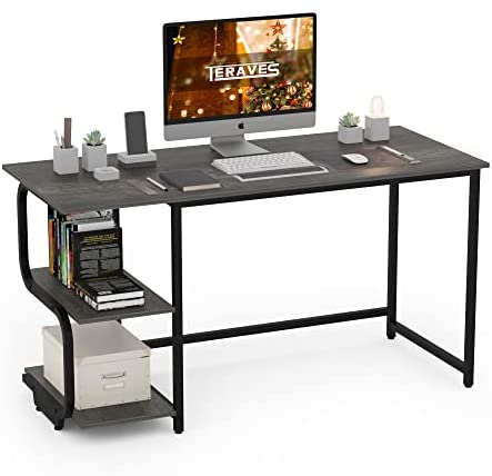 • Teraves Reversible Computer Desk for Small Spaces with Shelves,55 inch Gaming Desk Office Desk for Home Office