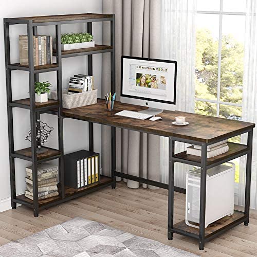 • Tribesigns 67″ Large Computer Desk with 9 Storage Shelves, Office Desk Study Table Writing Desk Workstation with Hutch Bookshelf for Home Office (Rustic)
