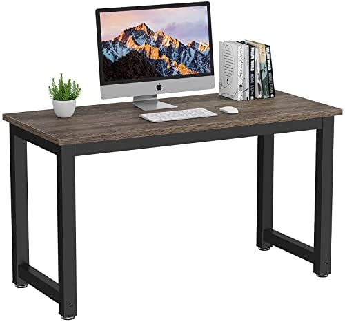 • Computer Desk Home Office Table: Simple Modern Long Desk for Work Study Writing Rustic Industrial Tall PC Table for Small Space Bedroom with Wide Large Desktop Metal Wood 47inch Rustic Grey