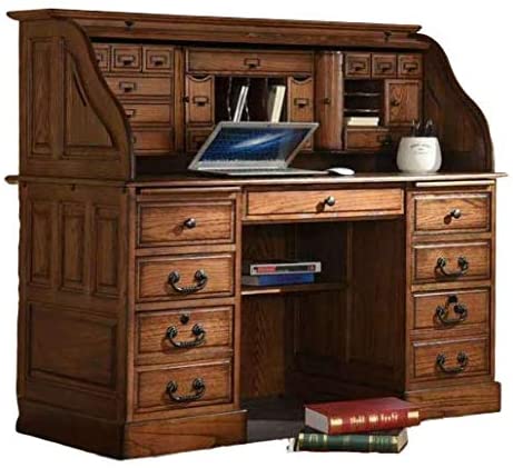 • Roll Top Desk Solid Oak Wood – 54 Inch Deluxe Executive Rolltop Desk Burnished Walnut Stain for Home Office Secretary Organizer Roll Hutch Top Easy Assembly Quality Crafted Construction