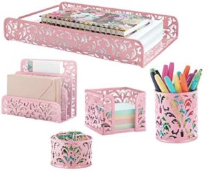 • Pink 5-Piece Metal Desk Accessories, Desk Organizer & Desk Decor Set, Cute Office Decor Provides Great Office Organization for Women or Room Decor for Teen Girls