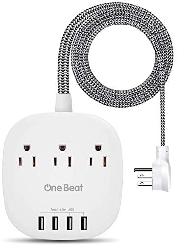 • Desktop Power Strip with 3 Outlet 4 USB Ports 4.5A, Flat Plug and 5 ft Long Braided Extension Cords for Cruise Ship Travel Home Office, ETL Listed