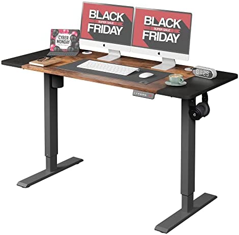 • DEVAISE Height Adjustable Electric Standing Desk, Stand Up Desk for Home Office, 55 x 24 Inches Sit Stand Desk/Computer Workstation, Rustic Brown
