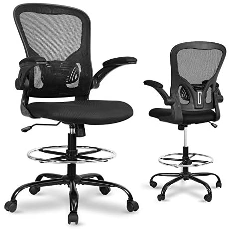 • Drafting Chair Tall Office Chair – Ergonomic Mesh Standing Desk Stool with Flip-Up Arms, Conference Room Computer Chairs with Adjustable Foot Ring, Executive Rolling Swivel Chair for Home & Office.