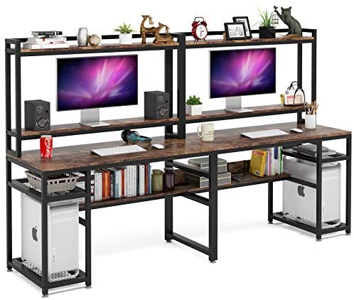 • Tribesigns 94.5 inch Extra Long Double Computer Desk with Hutch & Monitor Stand, Large Two Person Desk with Storage Shelves & CPU Stand, Study Writing Table Workstation with Bookshelf for Home Office