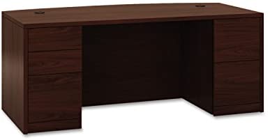 • HON 105899NN 10500 Bow Front Double Pedestal Desk, Full-Height Pedestals, 72w x 36d, Mahogany