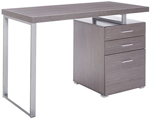 • Monarch Specialties Left or Right Facing 47-Inch Modern Home Office Computer Study Writing Desk with Filing Drawer, 48″L, Grey & Silver