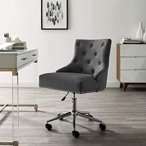 • Modway Regent Tufted Button Upholstered Fabric Swivel Office Chair with Nailhead Trim in Gray