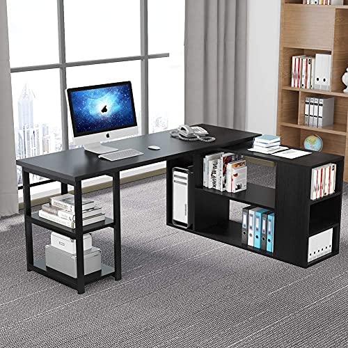 • L-Shaped Computer Desk, Tribesigns Rotating Corner Computer Desk with Bookcase and File Cabinet, Reversible L Shaped Office Desk for Home Office (Black)