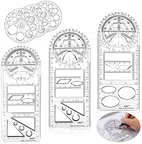 • 6 Pieces Multifunctional Geometric Ruler Newly Drawing Template Measuring Tool Mathematics Drawing Ruler Plastic Draft Rulers Architecture Rulers for School Student Teacher Artist Office Supplies