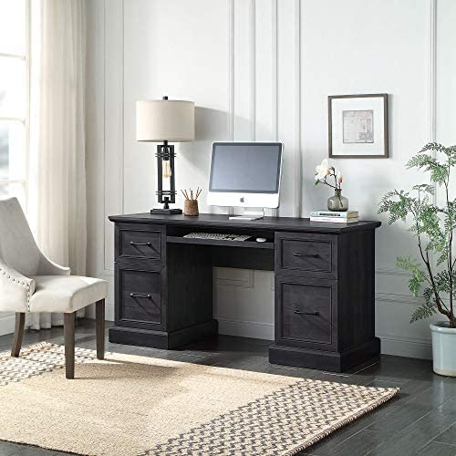 • BELLEZE Modern Executive Home Office Computer Desk Table with Two Storage Drawers, Two File Drawers, Slideout Keyboard, and Mouse Shelf – Rhudi (Rustic Grey)