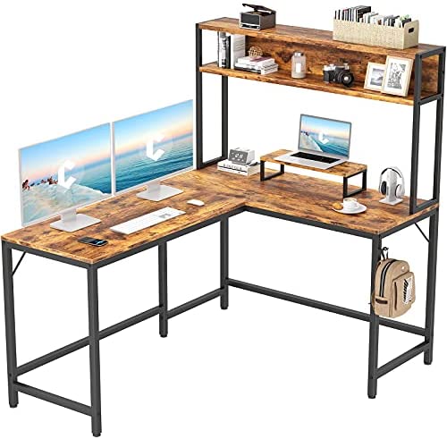 • CubiCubi L-Shaped Desk with Hutch,59″ Corner Computer Desk,Home Office Gaming Table Workstation with Storage Bookshelf