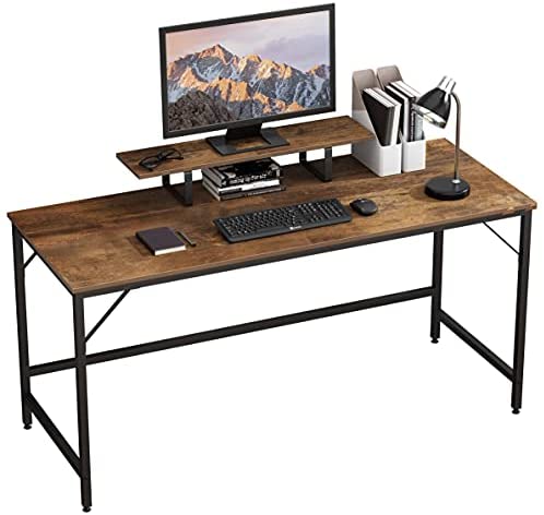 • HOMEYFINE Computer Desk,Laptop Table with Storage for Controller,60 Inches,Wood and Metal,Study Table for Home Office(Vintage Oak Finish)